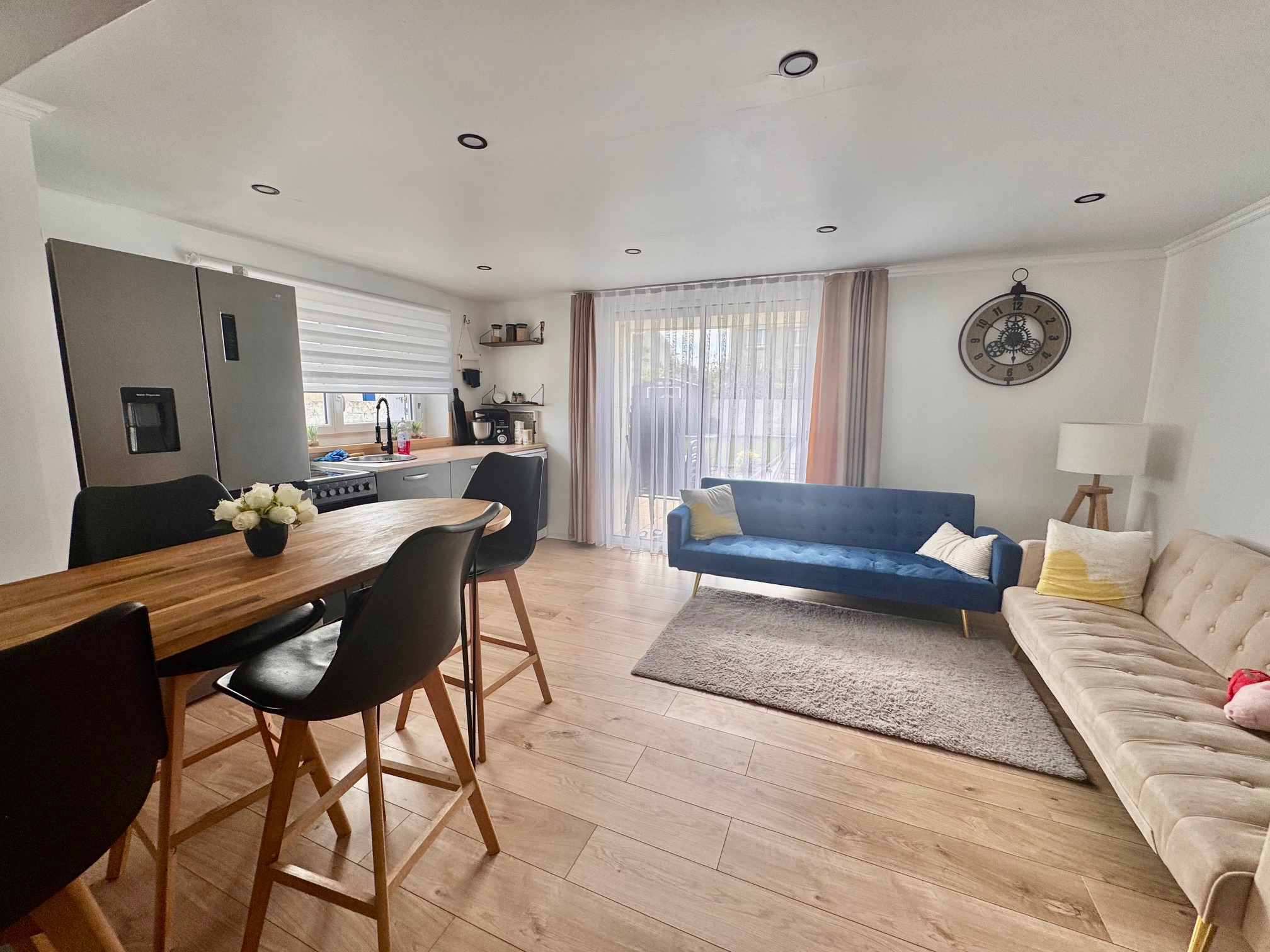 Au rez-de-chaussée, vous découvrirez une cuisine d’été et un salon pouvant facilement être aménagés en appartement indépendant pour un adolescent, un parent ou pour de la location. Un grand garage ainsi qu’un espace de dégagement/entrée complètent ce niveau.