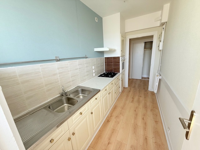 Brest Centre Siam: Venez découvrir ce beau T2/3 situé à deux pas de la rue de Siam, au 2ème étage d'un petit immeuble, comprenant une entrée, salon/séjour double, cuisine aménagée et semi-équipée (plaques de cuisson, four et hotte), chambre, salle d'eau, WC, loggia, cave.