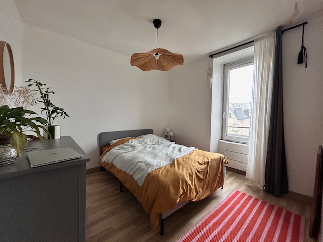 Brest St Martin: A louer beau T3 situé au 2ème étage d'un petit immeuble, à proximité des commerces et transports, il se compose d'une entrée, salon ouvert sur cuisine aménagée et équipée (frigo, plaque de cuisson vitrocéramique, hotte, four et congélateur), deux chambres, salle d'eau avec WC.