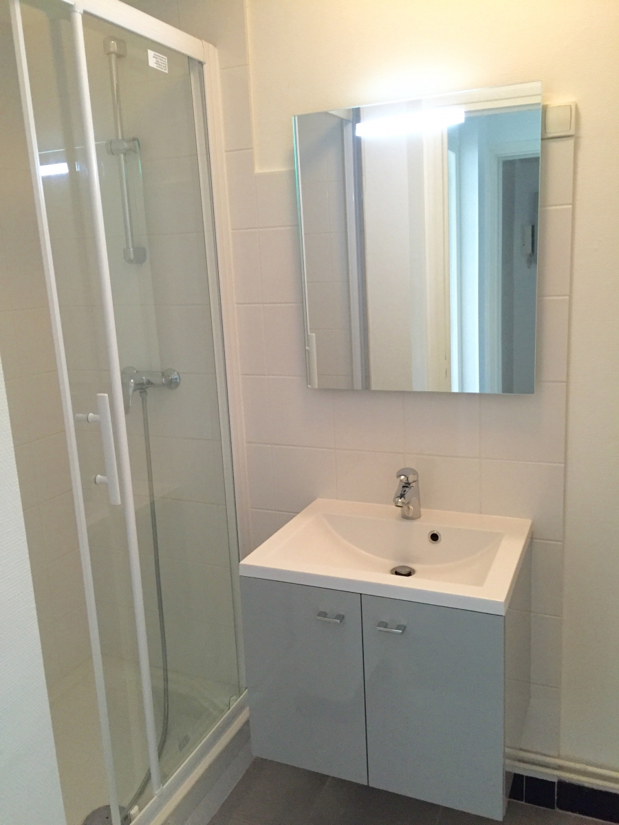 Brest Bellevue: A louer studio entièrement refait à neuf , situé dans un petit immeuble à proximité des facs, comprenant une entrée, pièce de vie avec cuisine équipée ( plaque électrique vitrocéramique, frigo, hotte), salle d'eau avec WC, nombreux rangements.