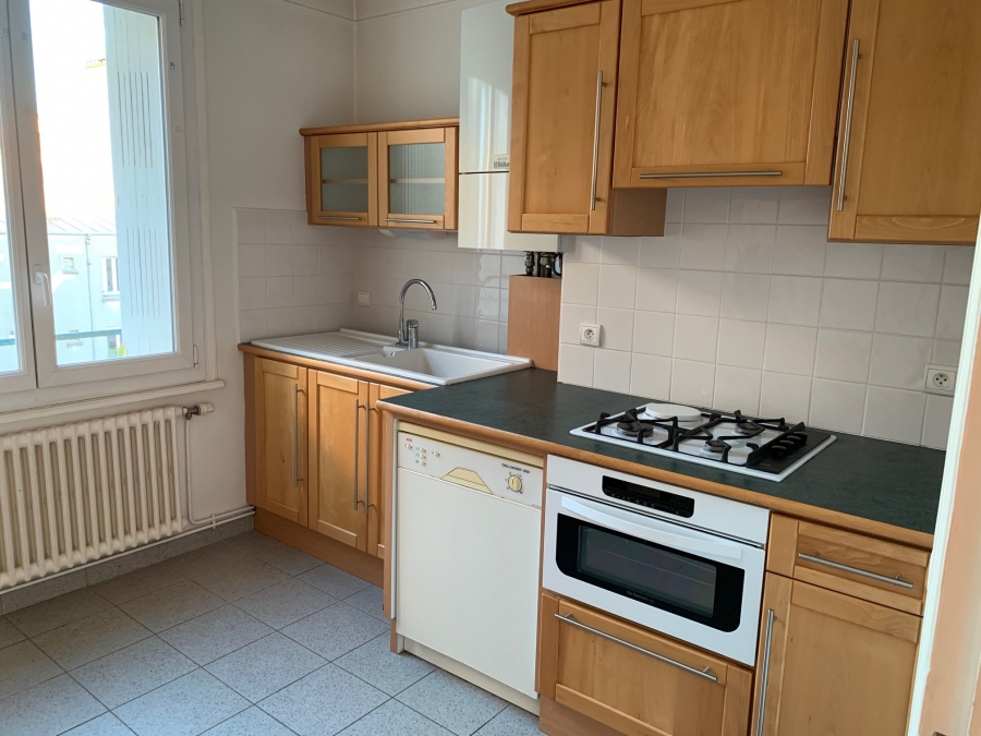 Brest Centre Siam: A louer très beau T3 de 67 M2 situé au 4ème et dernier étage sans ascenseur, d'un petit immeuble résidentiel, à proximité de l'église Saint Louis et du Boulevard Jean Moulin, il se compose d'une entrée, un salon/séjour, cuisine aménagée et équipée, deux chambres, salle d'eau avec WC, buanderie, cave.