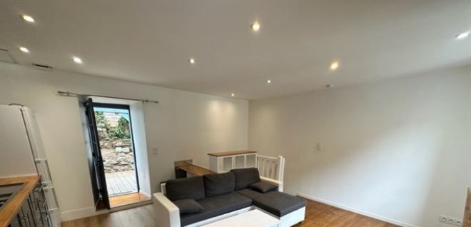 A louer Brest Rive Droite: charmante maison meublé, situé dans le quartier de Saint Pierre, proche de l'arsenal. Cette maison se compose au RDC: d'une entrée, une chambre avec placard, une salle d'eau, WC, buanderie avec machine à laver. A l'étage, vous trouverez une vaste pièce à vivre avec cuisine aménagée et équipée donnant sur un patio sans vis à vis.