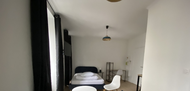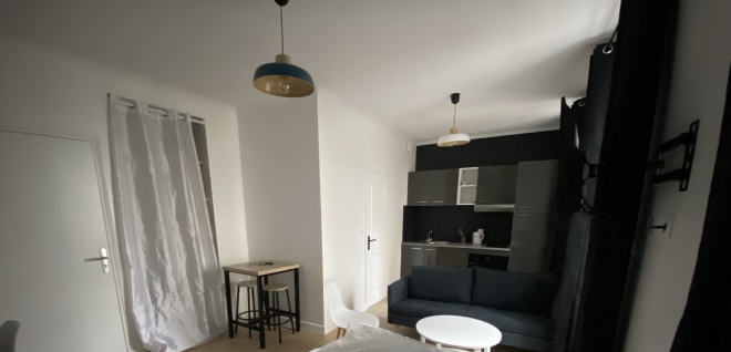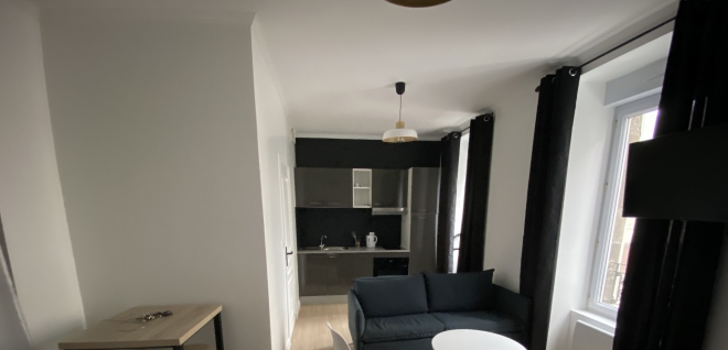 Brest Centre Jaurès: A louer superbe T1 entièrement neuf, situé au 1er étage d'un petit immeuble. Il se compose d'une pièce de vie avec cuisine aménagée et équipée ( four, plaque de cuisson vitrocéramique, hotte, congélateur et frigo). Une salle d'eau avec WC.
