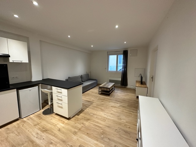 Brest Centre Siam: A louer superbe T1 Bis meublé situé dans le quartier de Siam, à deux pas du cours d'Ajot. L'appartement entièrement refait à neuf, se compose d'une pièce de vie avec cuisine aménagée et équipée avec machine à laver, une chambre avec grand dressing, salle d'eau avec WC.