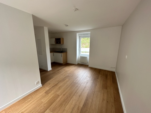 Brest Rive Gauche: A louer T1 neuf, situé au RDC, dans un petit immeuble donnant sur les rives de la Penfeld, proche des facs: il se compose d'une pièce de vie avec cuisine équipée, une salle d'eau avec WC.