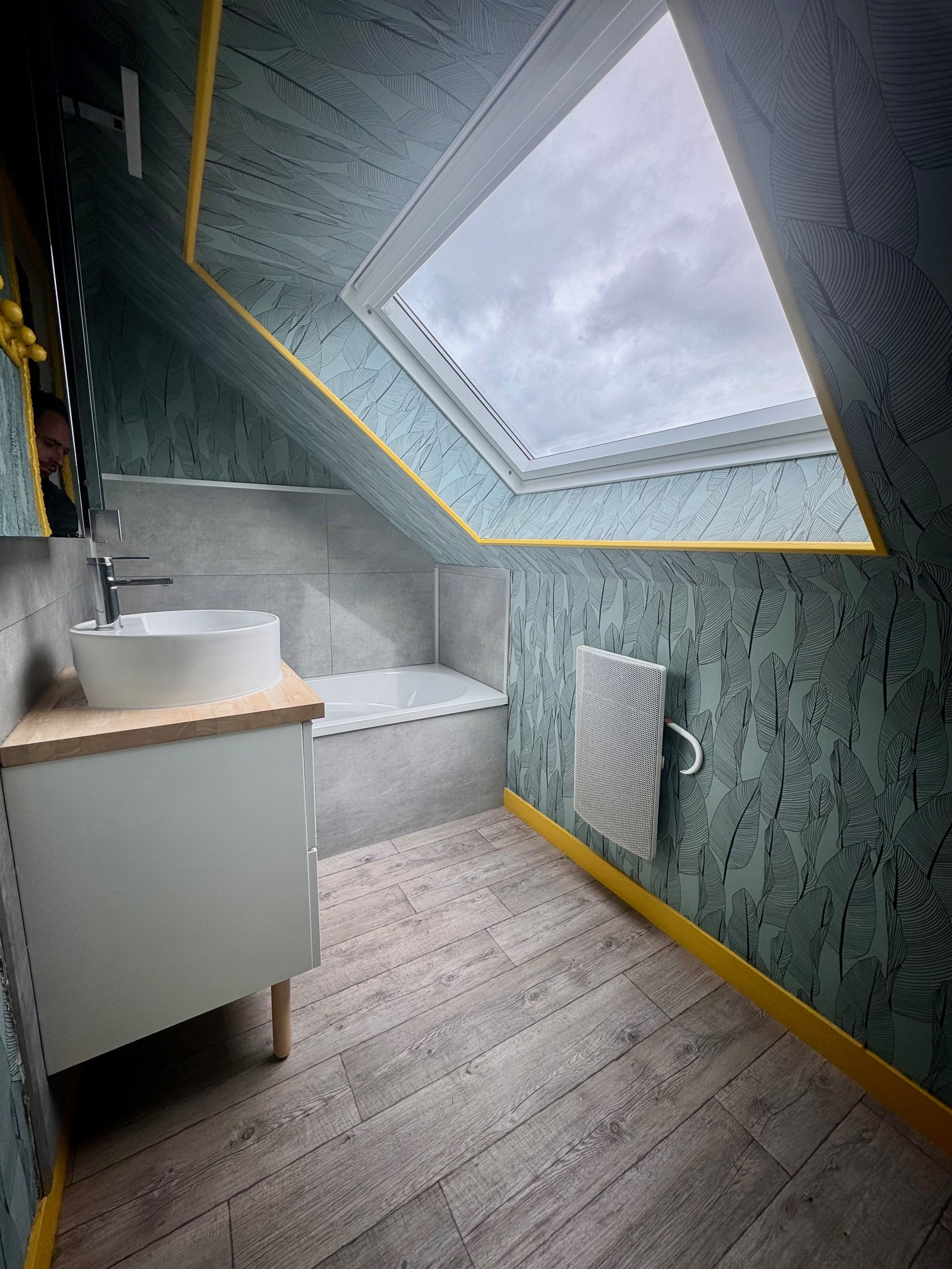 À l’étage, la maison comprend deux chambres, une salle de bains, ainsi qu’un WC indépendant.