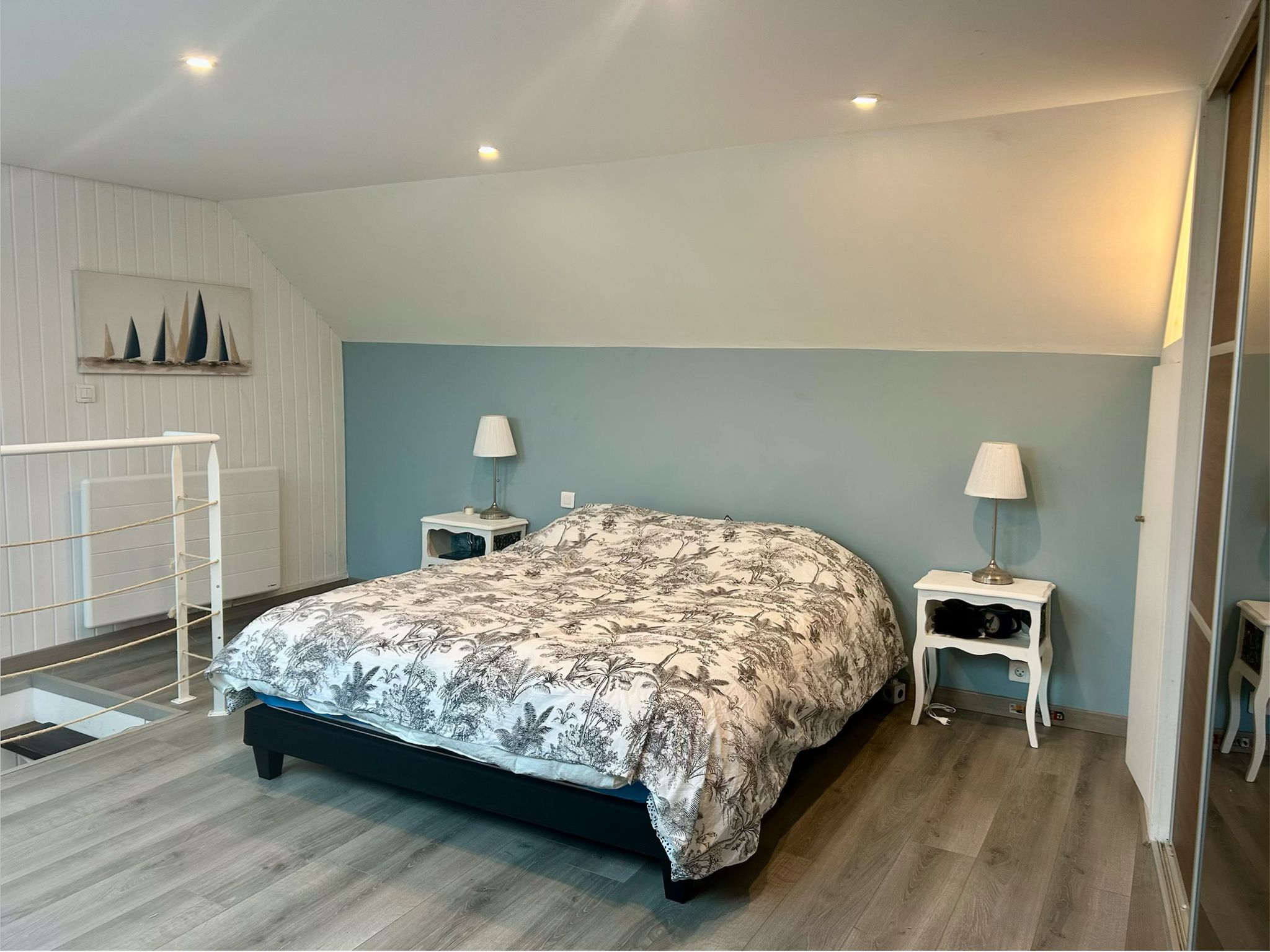 La partie nuit se compose de trois grandes chambres, d’une salle de bain et d’une salle d’eau.