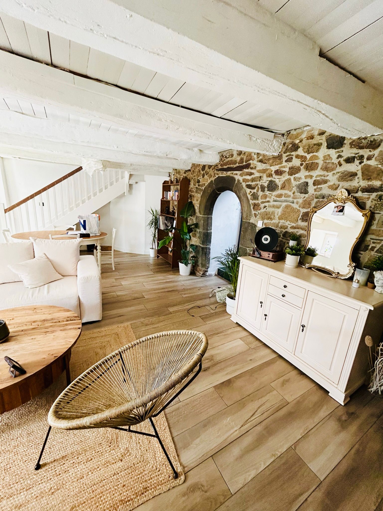 Cette maison chaleureuse et parfaitement entretenue offre de beaux volumes de vie. Vous y trouverez un grand salon/salle à manger lumineux communicant sur une cuisine aménagée et entièrement équipée, créant un espace convivial et fonctionnel au quotidien.