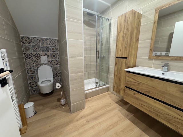 Une salle d'eau avec WC.